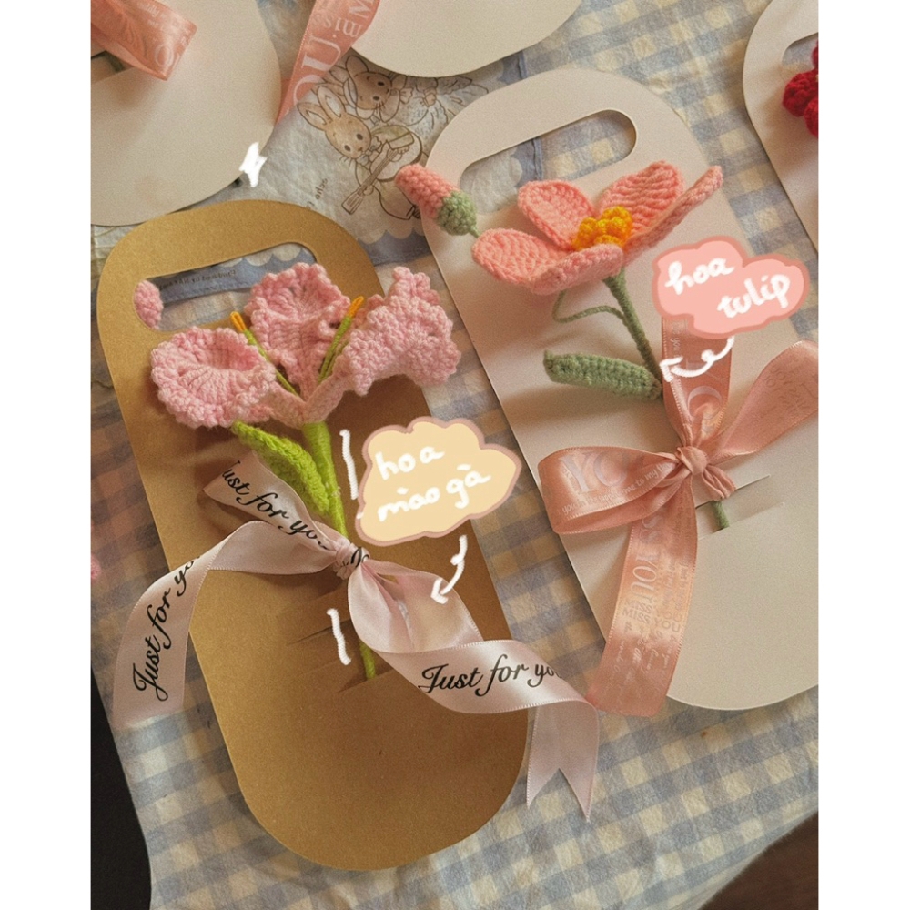 Bìa Cành Hoa Bằng Len Hoa Hồng Tulip Linh Lan Handmade Tặng Bạn Gái Phụ Nữ Việt Nam Dễ Thương Thủ Công