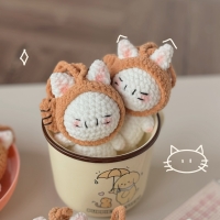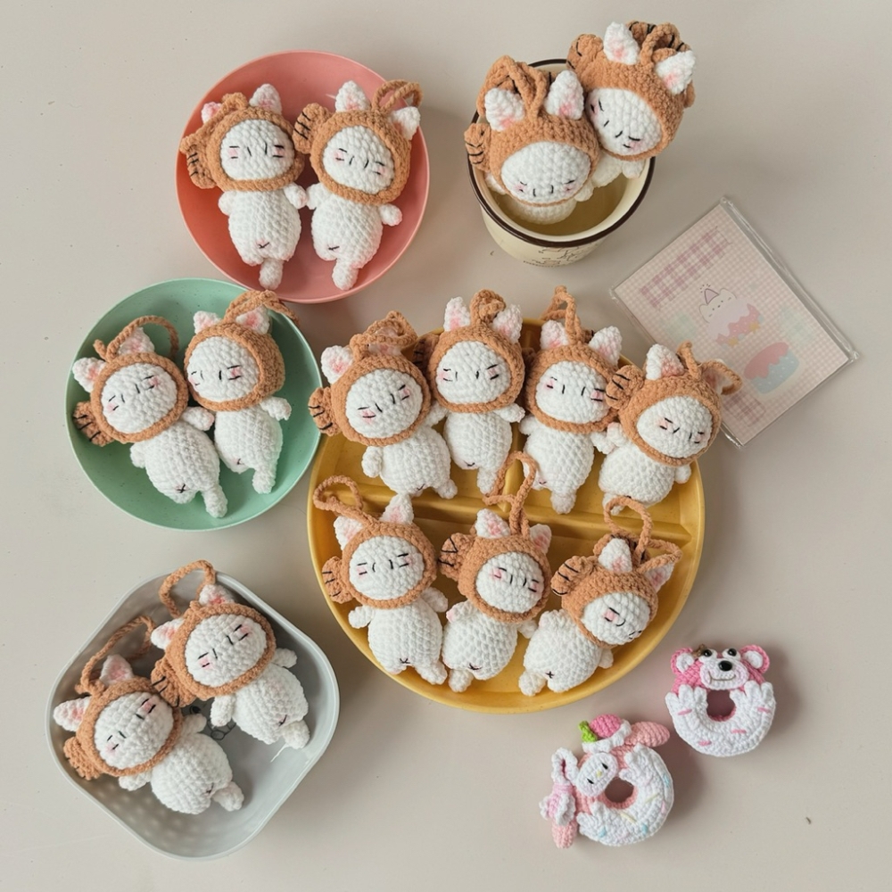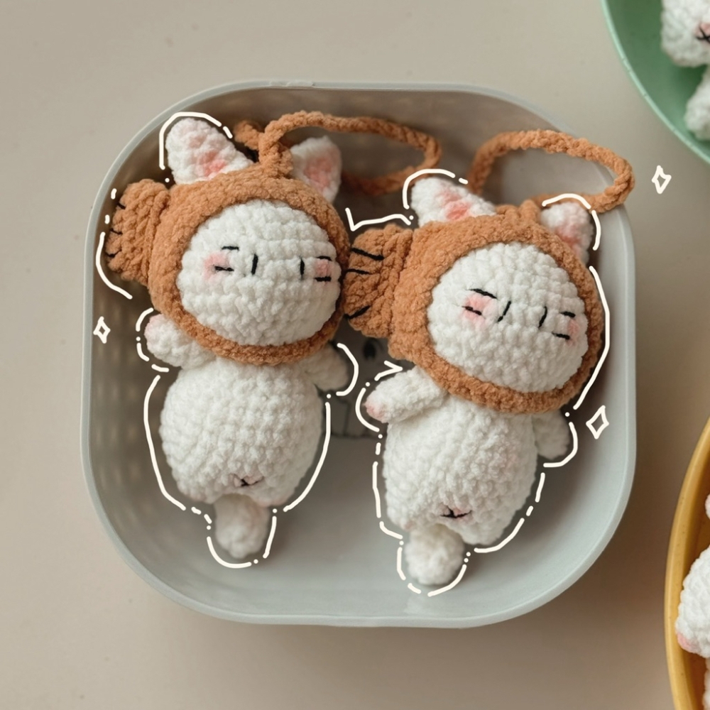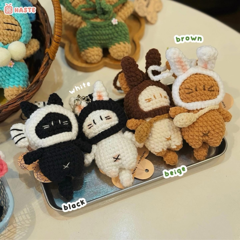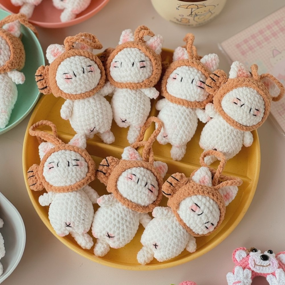 Móc Khoá Len Nhung Mèo Đội Nón Cá Cosplay Kitty Dễ Thương Handmade