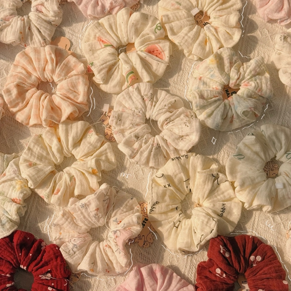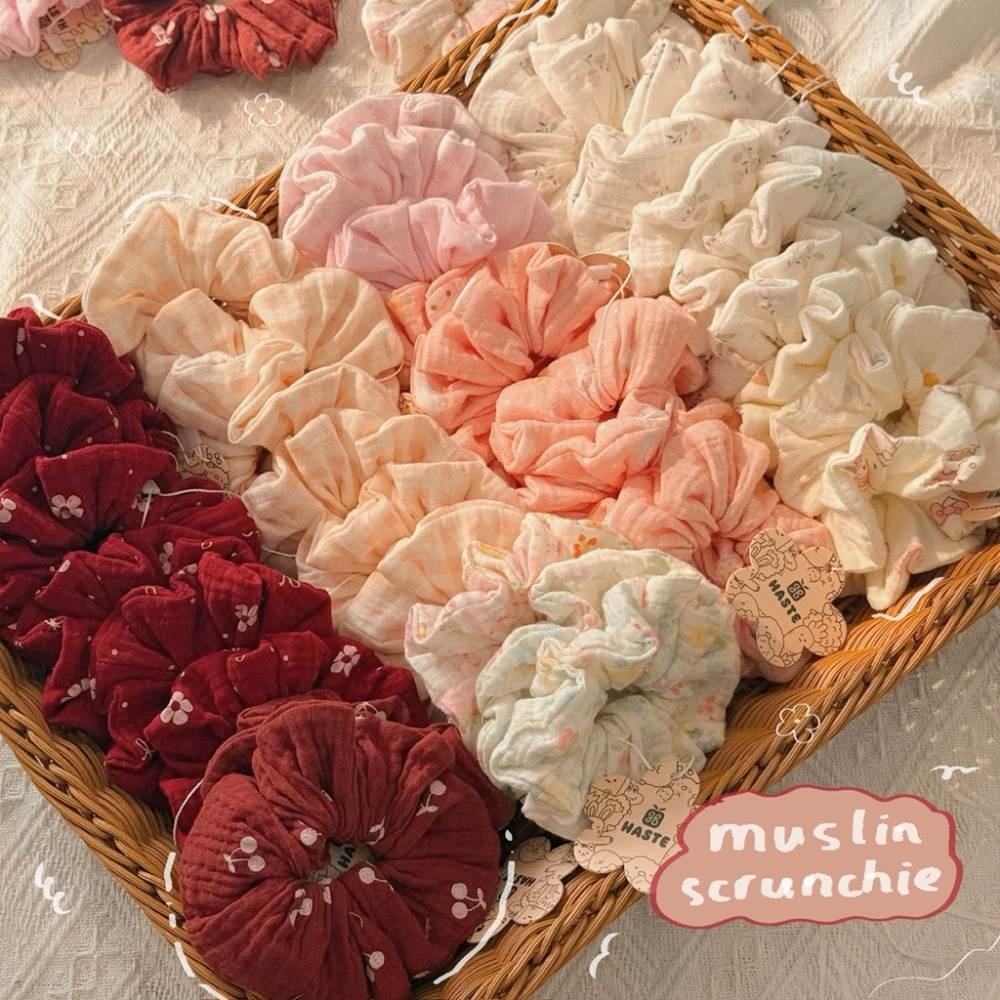 Scrunchie Cột Tóc Vải Xô Muslin Hoạ Tiết Hoa Nhí Phong Cách Hàn Quốc Bánh Bèo Nàng Thơ Siêu Dễ Thương